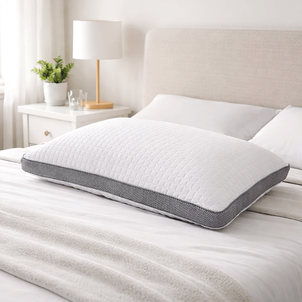 Su cubierta con textura suave proporciona una sensación agradable al tacto, mientras que su diseño permite una buena circulación del aire para mantener frescura durante el descanso. Es una excelente opción para quienes buscan una almohada cómoda, práctica y perfecta para el uso diario.